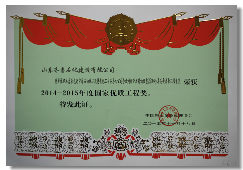中國(guó)石化優(yōu)質(zhì)工程獎(jiǎng)